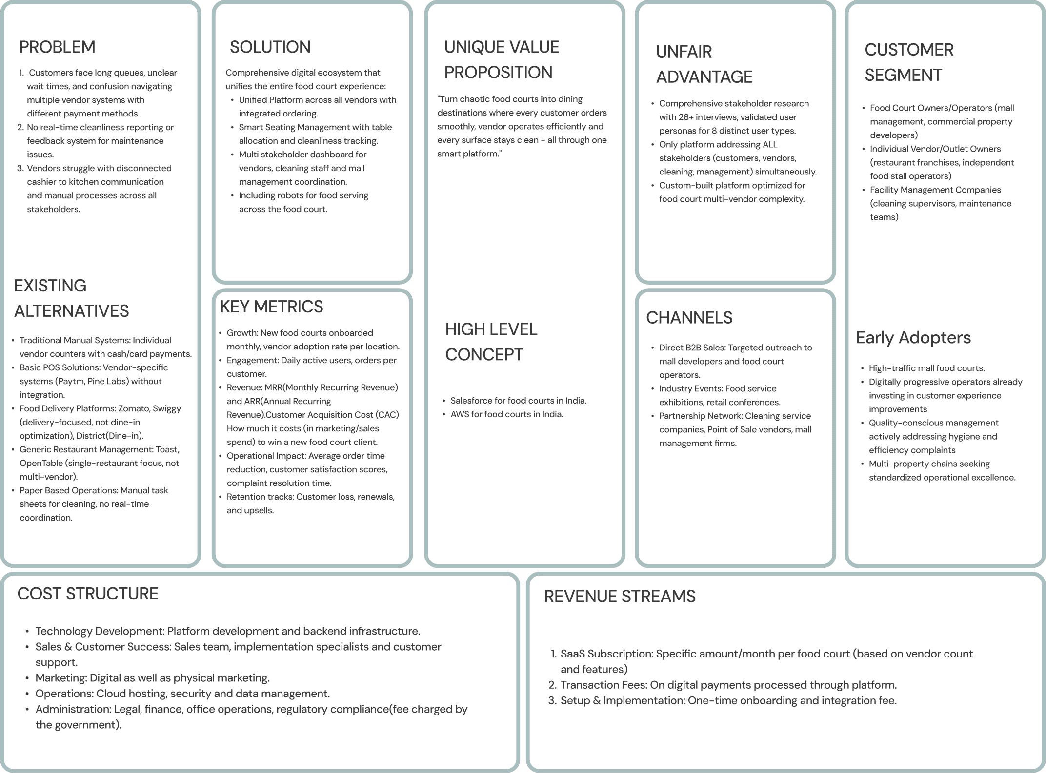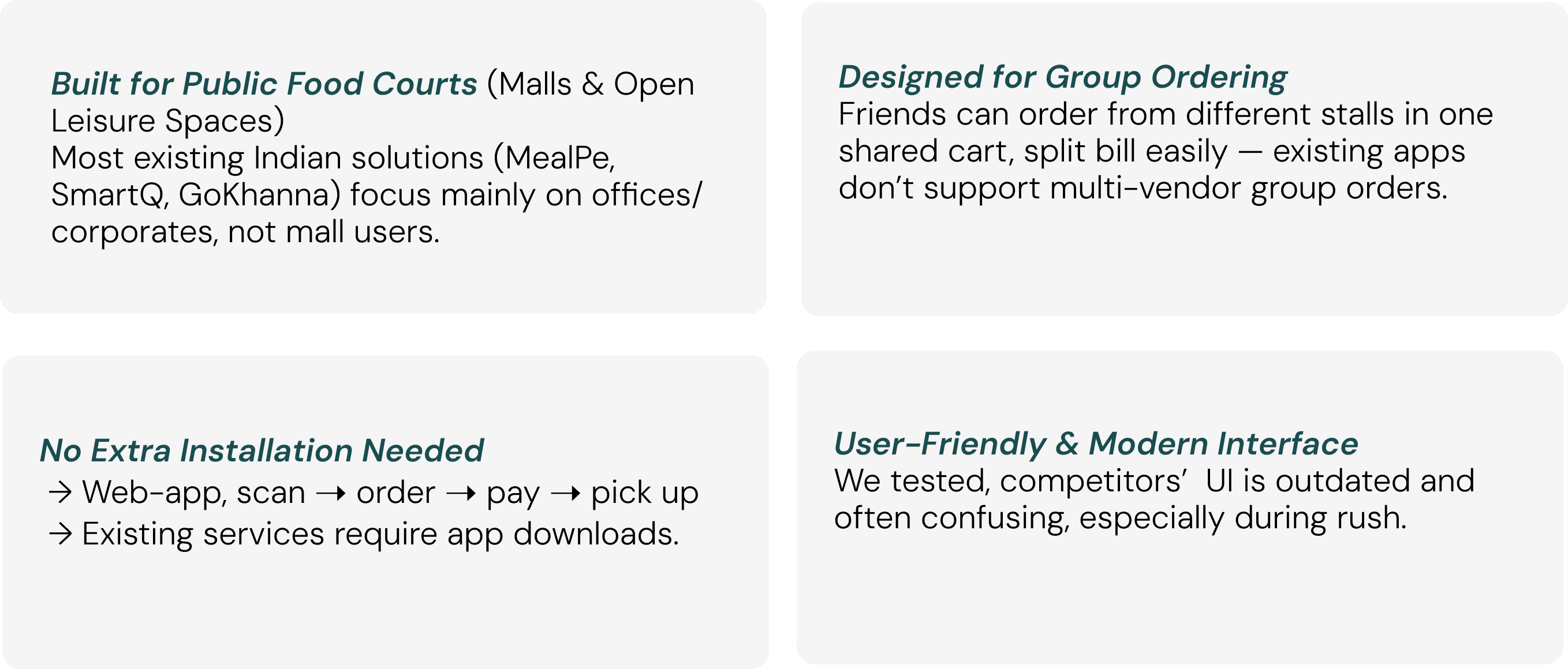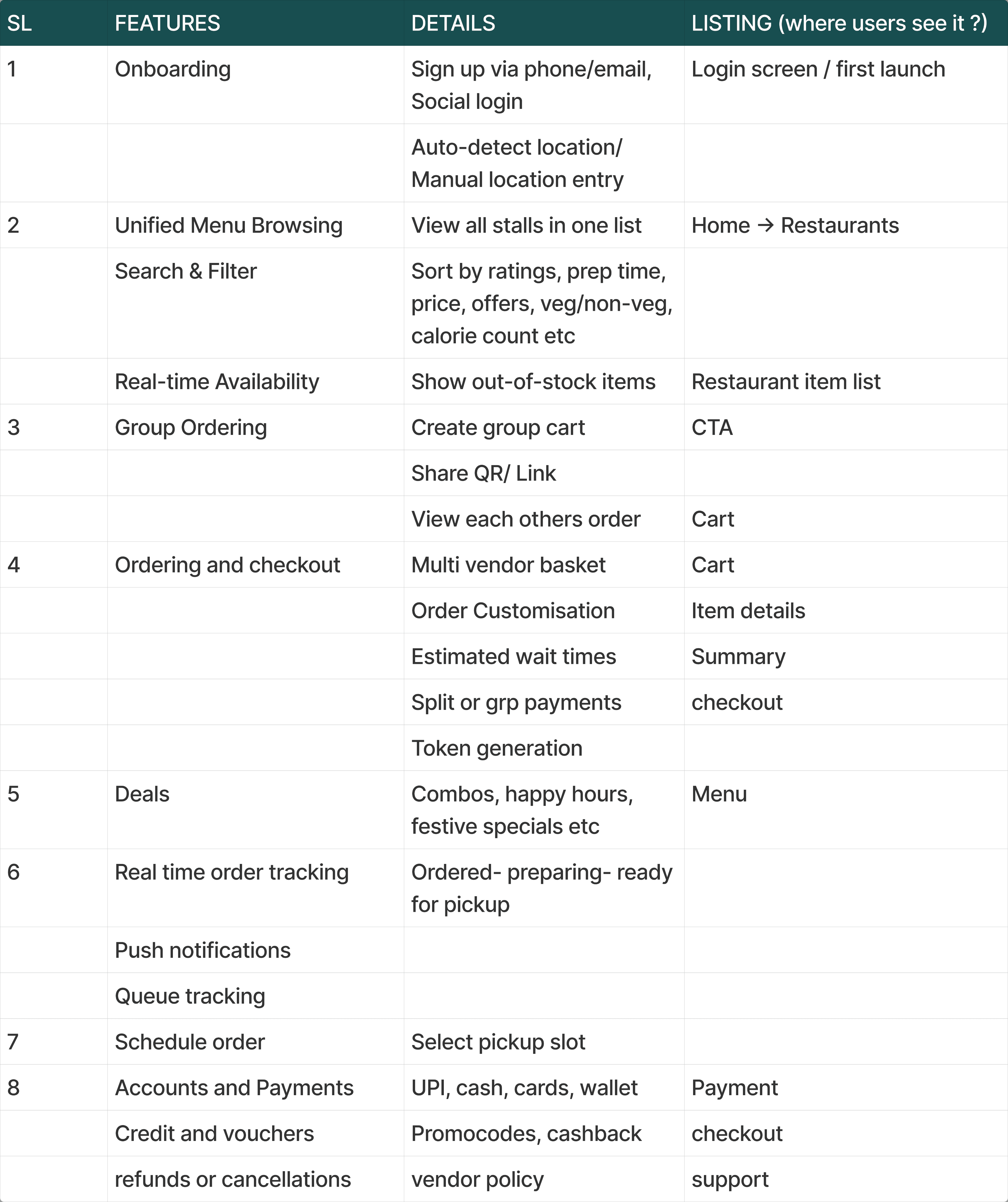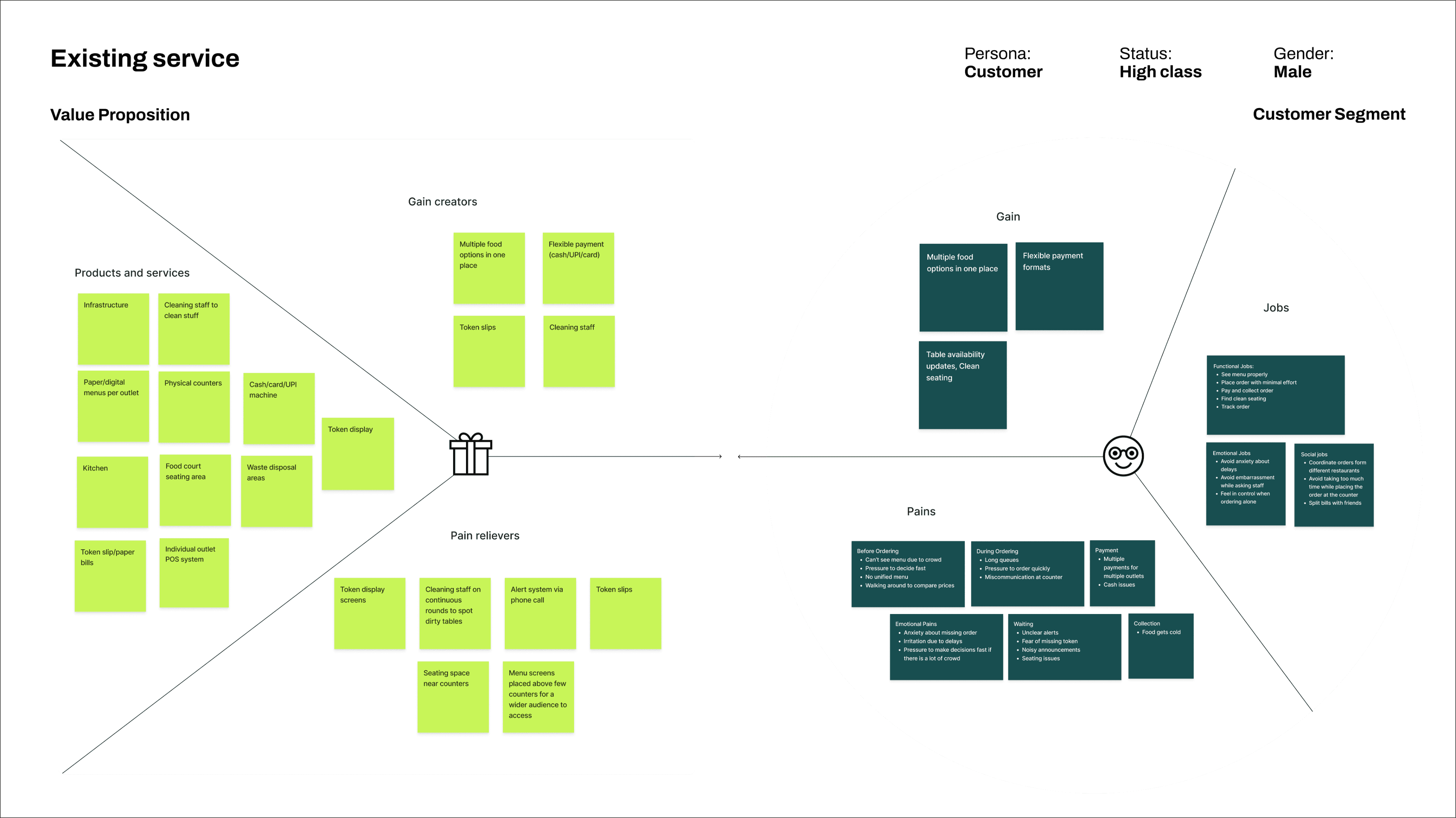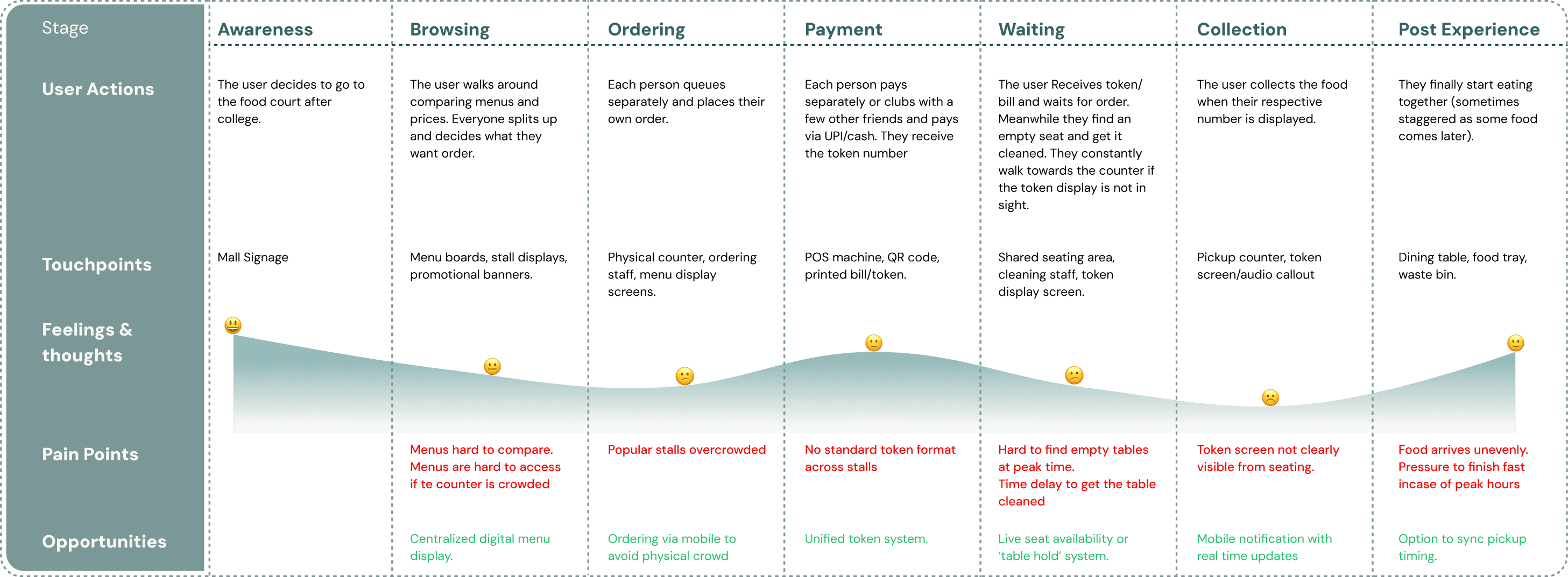 By analysing the existing food court experience, we identified what