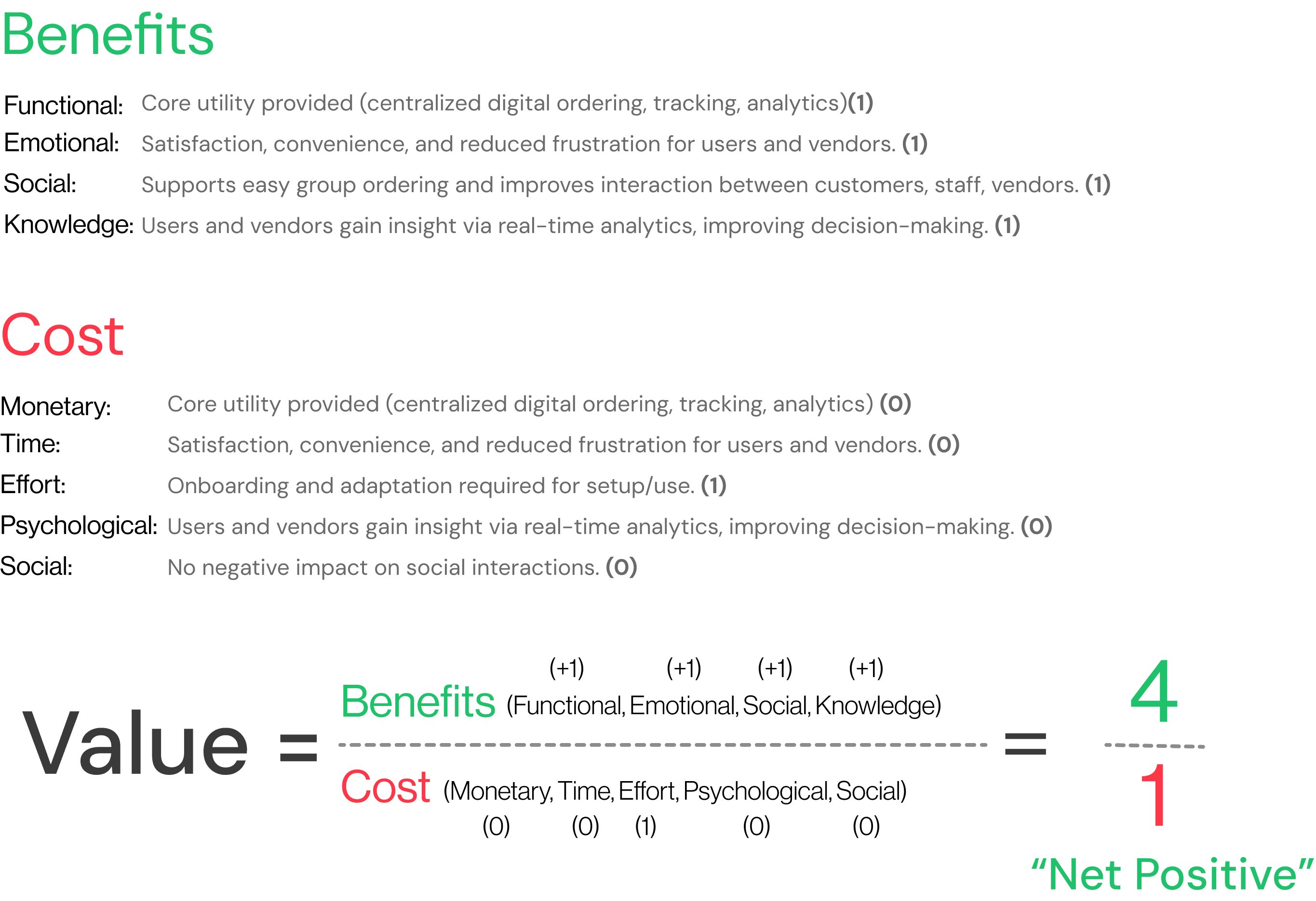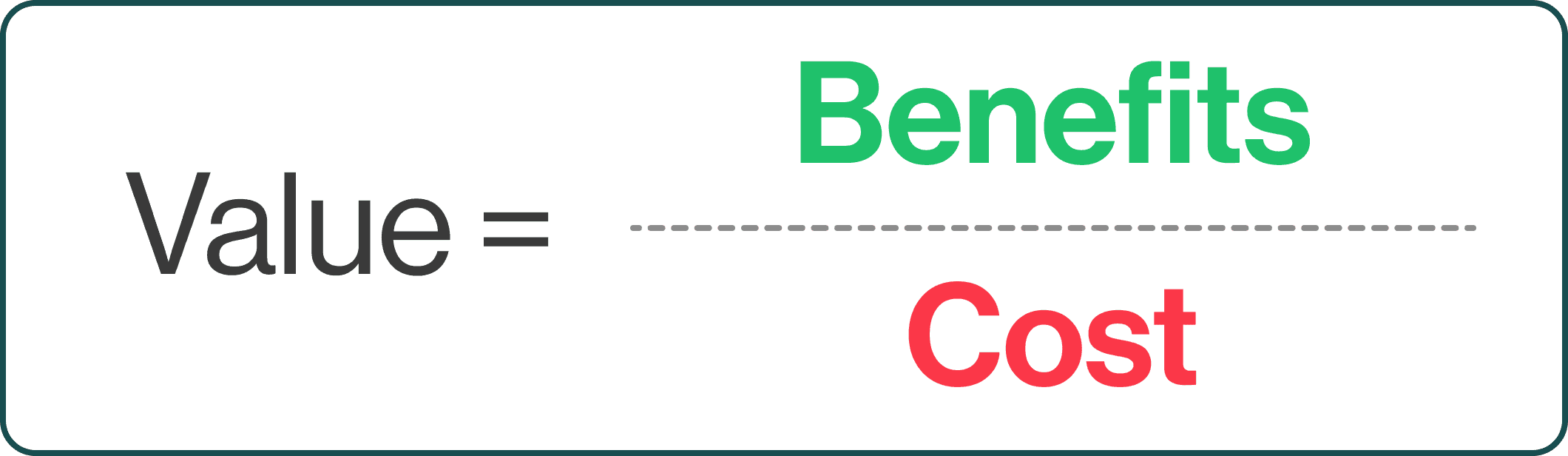 The value equation compares user benefits to the costs they