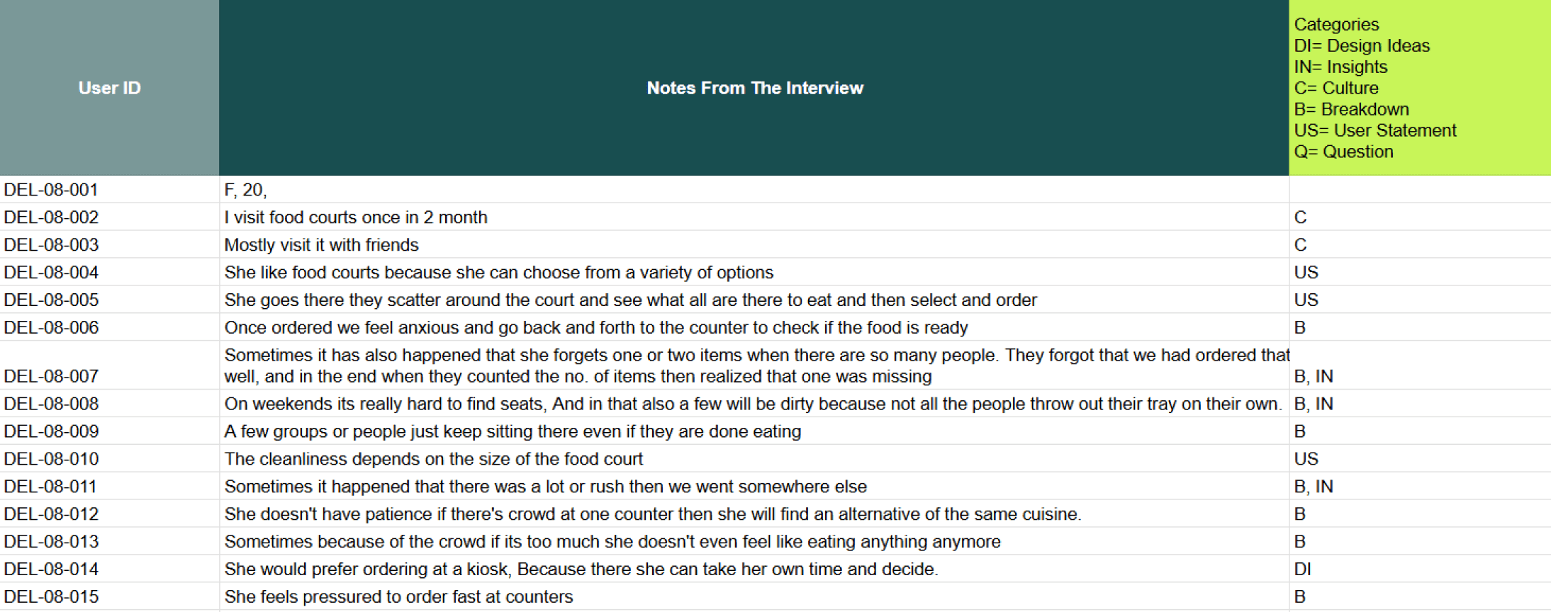 Conducted ethnographic observations in live food courts.